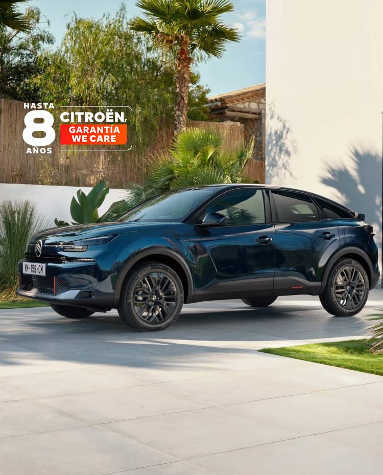 - Garantía Citroën We Care, que ofrece una extensión de garantía de 6 años con coberturas especiales tras el vencimiento de la garantía estándar del fabricante. Se activa cuando las revisiones se realizan en la red autorizada Citroën de acuerdo con el programa de mantenimiento recomendado, y sigue siendo válida hasta la siguiente revisión, hasta un máximo de 8 años o 160.000 km. Este servicio único cubre componentes esenciales como el motor, la caja de cambios, la transmisión y la cadena cinemática, para todos los vehículos nuevos matriculados a partir del 10 de enero de 2025. Citroën We Care refleja el compromiso de Citroën con la calidad y la fiabilidad.