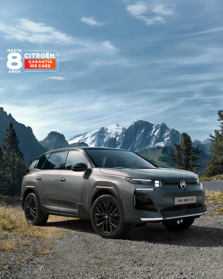 (2) Oferta financiera de 36 mensualidades y 30.000 km. Nuevo C5 Aircross Eléctrico 154 kw/ 210 CV - 73kwh Autonomía estándar You con precio financiando de 37.490,00€ en Península y Baleares para clientes particulares que financien mínimo a 36 meses a través de Stellantis Financial Services España EFC, S.A. Incluidos impuestos, transporte, descuentos. Sujeto a aprobación financiera. Entrada: 12.485,86€. Mensualidad de 209€ que se compone de una cuota financiera mensual para una duración de 35 meses de 185,56€ y de un seguro de crédito de 23,44€ al mes. Última cuota: 24.813,83€. Capital financiado con comisión de apertura: 25.991,80€. Comisión de apertura (3,95%): 987,66€. Intereses: 5.316,63€. Coste total del crédito: 6.304,29€. Importe total adeudado: 31.308,43€. Precio total a plazos: 43.794,29€. TIN: 6,99%. TAE: 8,80%. Sistema de amortización francés. Al final del contrato podrá elegir entre entregar su vehículo, o abonar o refinanciar la última cuota. Oferta válida hasta el 31/01/2026. Precio al contado: 39.490,00€. El modelo visualizado puede no coincidir con el ofertado. Seguro de Crédito opcional (23,44€ al mes) incluido en las mensualidades y no en el capital financiado, suscrito con Stellantis Life Insurance Europe Limited, con el nº de registro C68966 y con domicilio social en MIB Housse, 53 Abate Rigord Street, Ta’ Xbiex, XBX1122 Malta, como compañía de seguros, y con la intermediación de Stellantis Financial Services España, EFC SA, agente de seguros vinculado inscrito en la Dirección General de Seguros y Fondos de Pensiones con la clave AJ-171 y con Seguro de Responsabilidad Civil contratado. Sujeta a normas de suscripción de la aseguradora. Consulte condiciones en www.citroen.es.