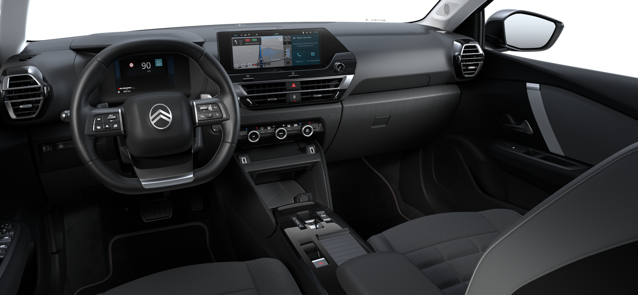 (6) Oferta financiera de 36 mensualidades y 30.000 km. C4 Hybrid 145 ë-DSC6 PLUS con precio financiando de 21.950€ en Península y Baleares para clientes particulares que financien mínimo a 36 meses a través de Stellantis Financial Services España EFC, S.A. Incluidos impuestos, transporte, descuentos. Sujeto a aprobación financiera. Entrada: 4.341,09€. Mensualidad de 149€ que se compone de una cuota financiera mensual para una duración de 35 meses de 132,49€ y de un seguro de crédito de 16,51€ al mes. Última cuota: 17.285,95€. Capital financiado con comisión de apertura: 18.304,46€. Comisión de apertura (3,95%): 695,55€. Intereses: 3.618,64€. Coste total del crédito: 4.314,19€. Importe total adeudado: 21.923,10€. Precio total a plazos: 26.264,19€. TIN: 6,79%. TAE: 8,59%. Sistema de amortización francés. Al final del contrato podrá elegir entre entregar su vehículo, o abonar o refinanciar la última cuota. Oferta válida hasta el 31/12/2025. Precio al contado: 23.950€. El modelo visualizado puede no coincidir con el ofertado. Seguro de Crédito opcional (16,51€ al mes) incluido en las mensualidades y no en el capital financiado, suscrito con Stellantis Life Insurance Europe Limited, con el nº de registro C68966 y con domicilio social en MIB Housse, 53 Abate Rigord Street, Ta’ Xbiex, XBX1122 Malta, como compañía de seguros, y con la intermediación de Stellantis Financial Services España, EFC SA, agente de seguros vinculado inscrito en la Dirección General de Seguros y Fondos de Pensiones con la clave AJ-171 y con Seguro de Responsabilidad Civil contratado. Sujeta a normas de suscripción de la aseguradora. Consulte condiciones en www.citroen.es.